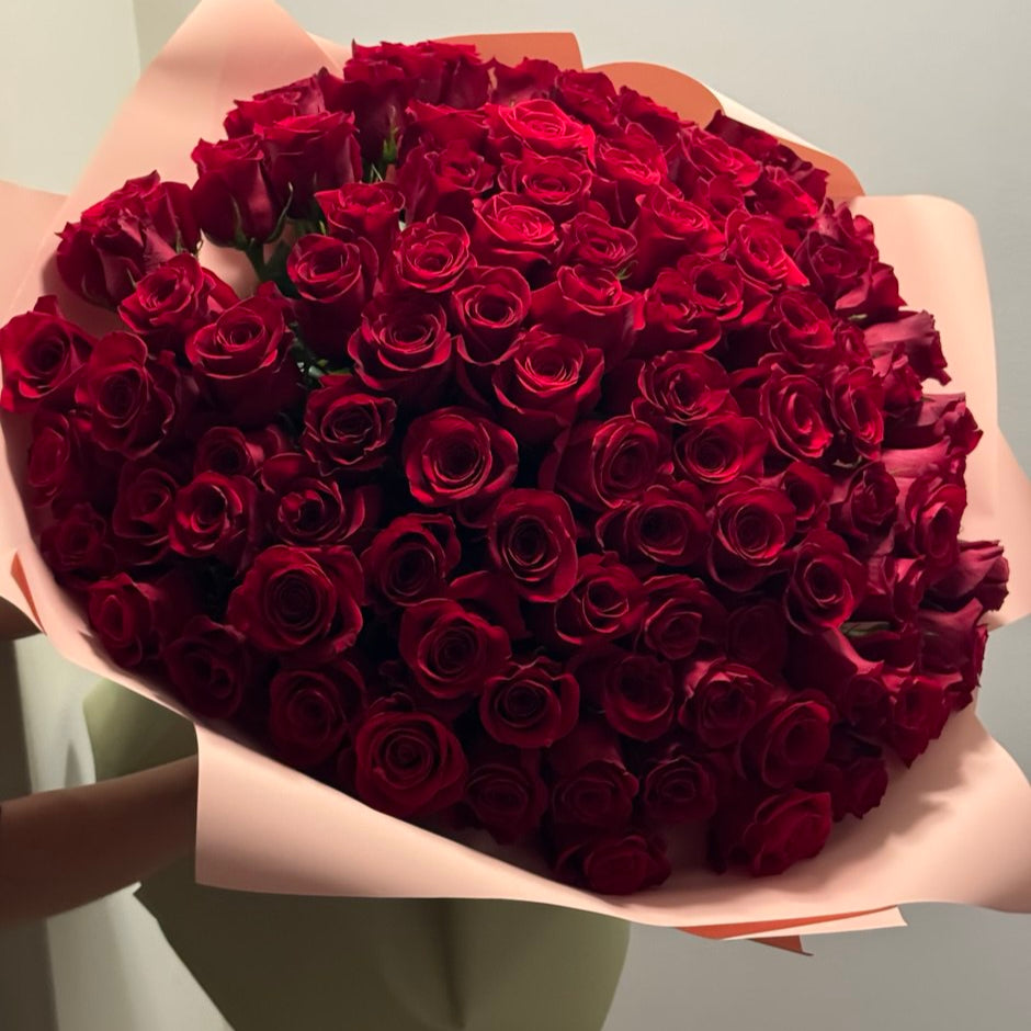 A luxurious bouquet of 101 fresh red roses, carefully arranged in elegant wrapping. The ultimate symbol of passion, love, and admiration. Perfect for proposals, anniversaries, or any unforgettable celebration.