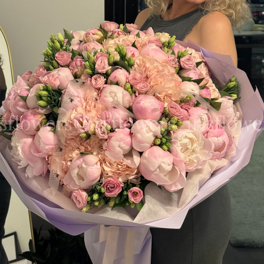Odessa is a luxurious, romantic bouquet that speaks the language of elegance and tenderness. Featuring lush peonies, delicate spray roses, lisianthus, and carnations in soft shades of blush pink, it’s a true symbol of femininity and grace. Perfect for special celebrations, declarations of love, or simply to leave someone breathless.